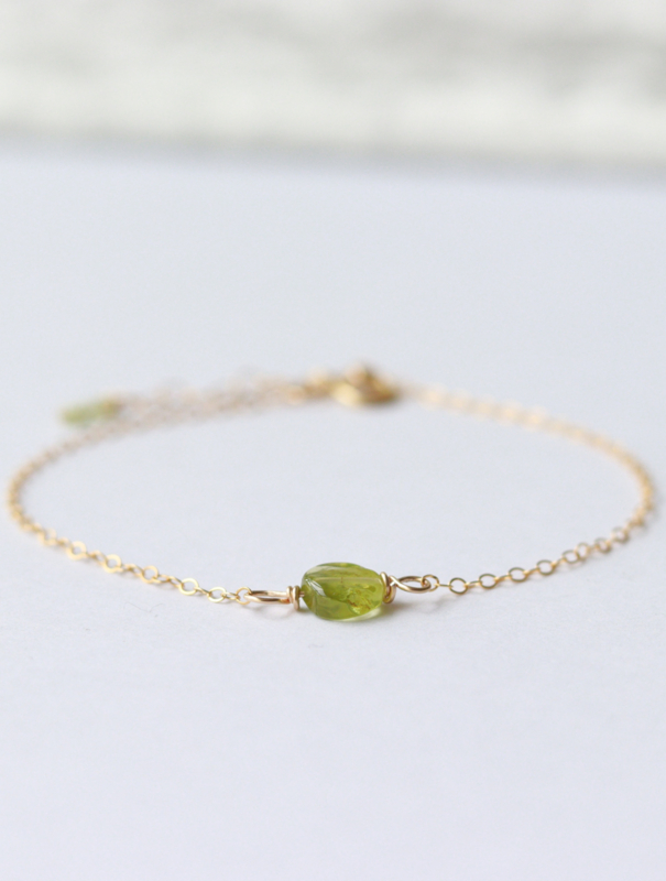 Materiaal: peridoot en 14k gold filled metaal of 925 sterling zilver