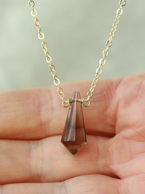 De hanger van deze ketting is gemaakt met een rookkwarts steen.