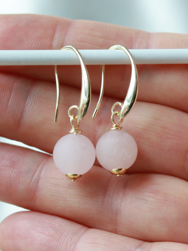 Artikelnummer: 43378 OverzichtDeze elegante rozenkwarts oorbellen in een bleekroze matte kleur, hebben een trendy, minimalistisch ontwerp, vervaardigd van hoogwaardig premium gold plated materiaal. Lichtgewicht en verfijnd, met een subtiele sprankeling, perfect voor feestjes, dagelijks gebruik of cadeau. Ze vormen een charmante aanvulling op elke sieradencollectie.