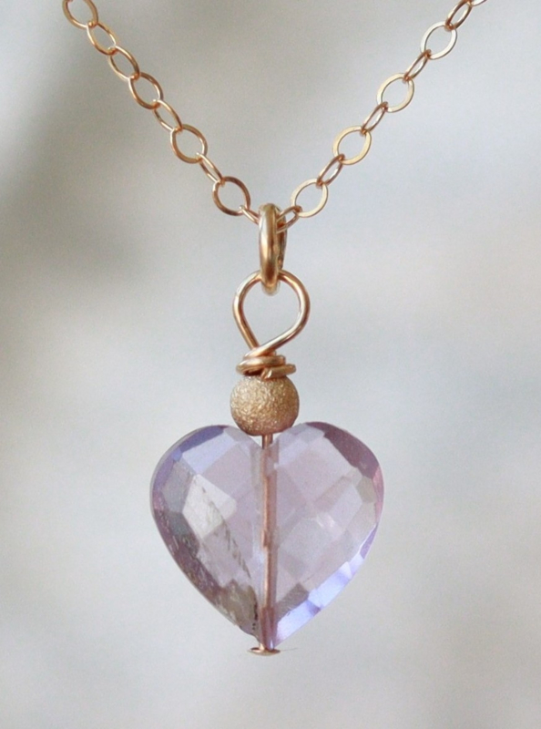 Roze amethist hart 14k gold filled gouden ketting, Roze amethist opent jou hart voor liefde, valentijnsdagDe hanger van deze ketting is gemaakt met een in hartvorm facet geslepen roze amethist steen, Het is een prachtige delicate hanger.