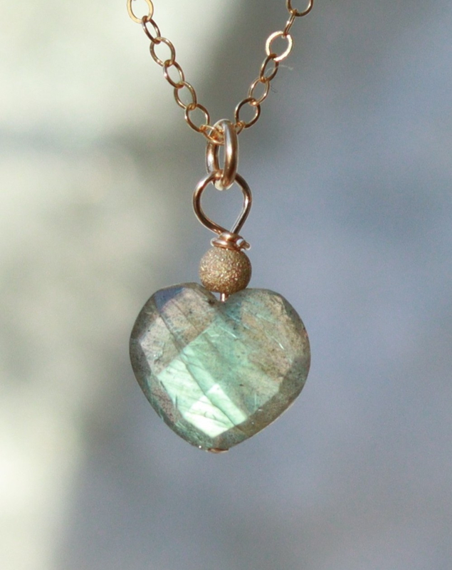Labradoriet hart met 14k gold filled gouden kettingDe hanger van deze ketting is gemaakt met een in hartvorm facet geslepen labradoriet. Het is een prachtige delicate hanger.