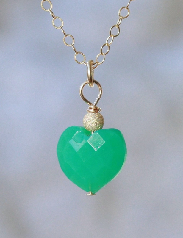 Chrysopraas hart 14k gold filled gouden kettingDe hanger van deze ketting is gemaakt met een in hartvorm facet geslepen chrysopraas steen. Het is een prachtige delicate hanger.