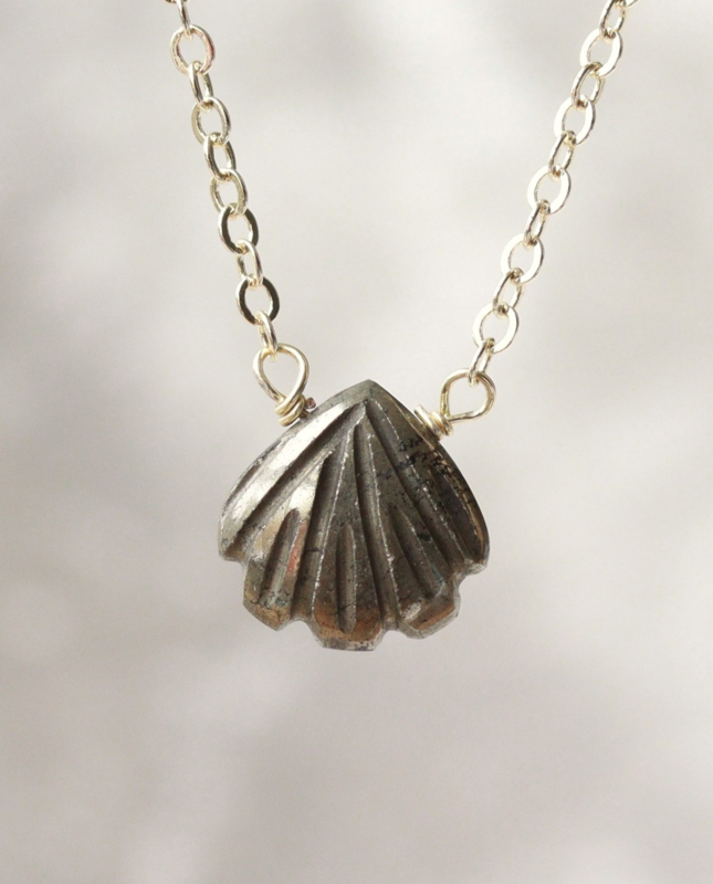 Pyriet schelp ketting gold platedDe hanger van deze ketting is gemaakt met een pyriet steen, die geslepen is in de vorm van een schelp,